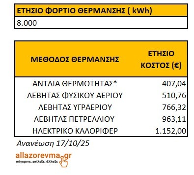 Πατώντας τον σύνδεσμο εδώ μπορείτε να δείτε την διαφορά του ακριβότερου από τον φθηνότερο πάροχο για την κάθε μέθοδο θέρμανσης.