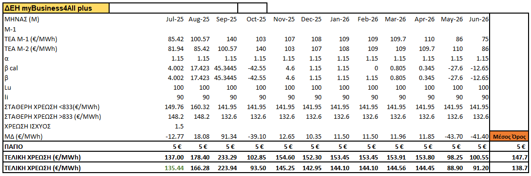 - Χρέωση ενέργειας <833 (€/MWh): 0,1387€/kWh