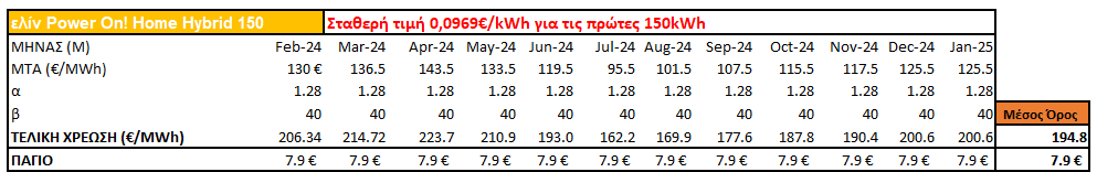 - Χρέωση ενέργειας : 0,1948€/kWh