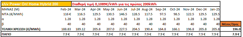 - Χρέωση ενέργειας : 0,1960€/kWh