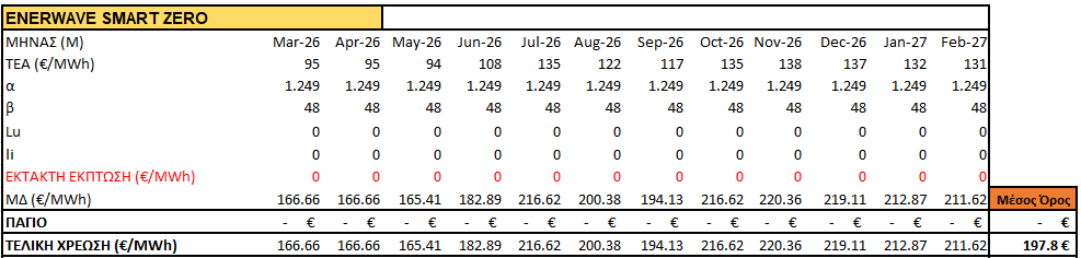 - Χρέωση ενέργειας νύχτας: 0,1978€/kWh