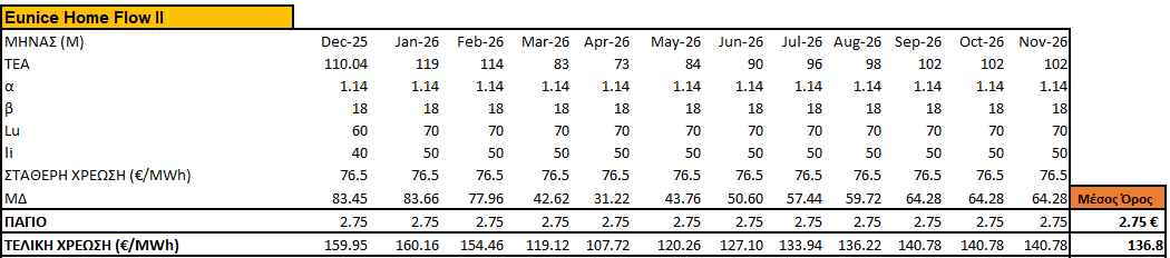 - Χρέωση ενέργειας : 0,1368€/kWh