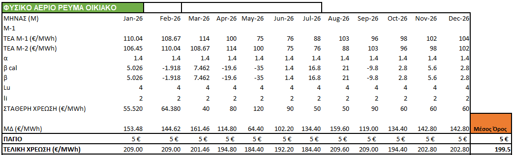 - Χρέωση ενέργειας : 0,1995€/kWh