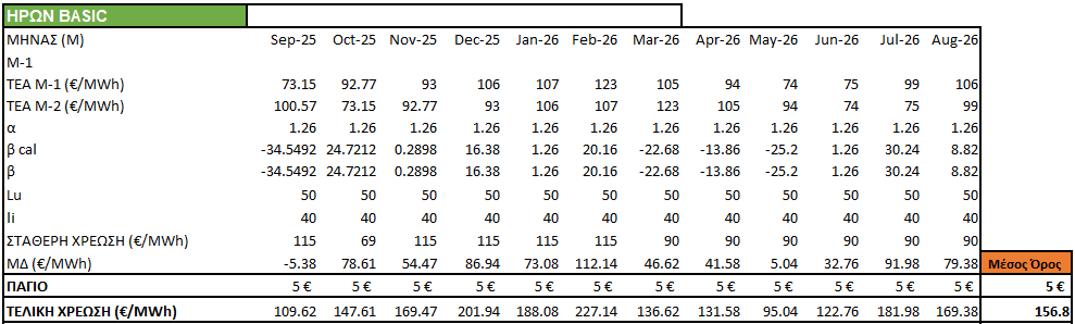 - Χρέωση ενέργειας : 0,1568€/kWh