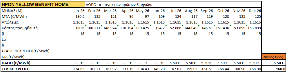 - Χρέωση ενέργειας ζώνης μειωμένης χρέωσης: 0,1608€/kWh