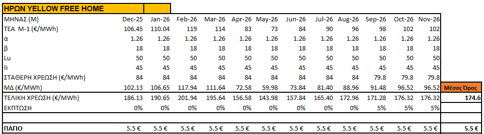 - Χρέωση ενέργειας : 0,1746€/kWh