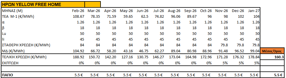 - Μηνιαίο Πάγιο: 5,5€