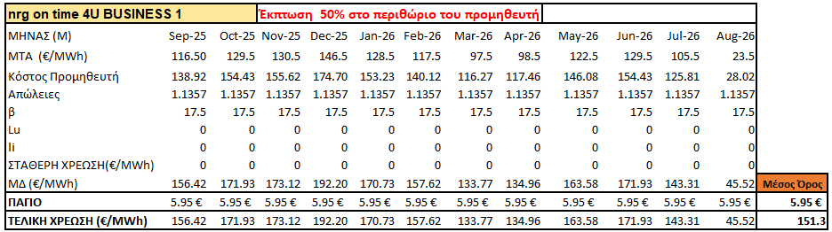 | Έκπτωση Συνέπειας | 50% Έκπτωση Συνέπειας στο περιθώριο του προμηθευτή μετά τους πρώτους 3 μήνες. 1,5€ έκπτωση παγίου με e-bill και πάγια εντολή |