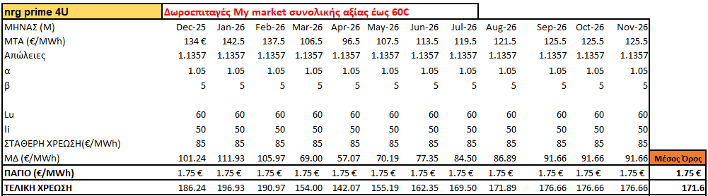 - Χρέωση ενέργειας : 0,1716€/kWh