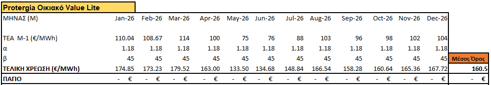 - Χρέωση ενέργειας : 0,1605€/kWh