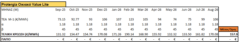 - Χρέωση ενέργειας : 0,1579€/kWh