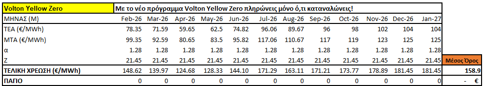 Χρέωση ενέργειας με υπολογισμό τυχόν μηχανισμού διακύμανσης με πρόβλεψη τιμών χονδρικής για τους επόμενους 12 μήνες. Η χρέωση νύχτας προϋποθέτει νυχτερινό μετρητή.